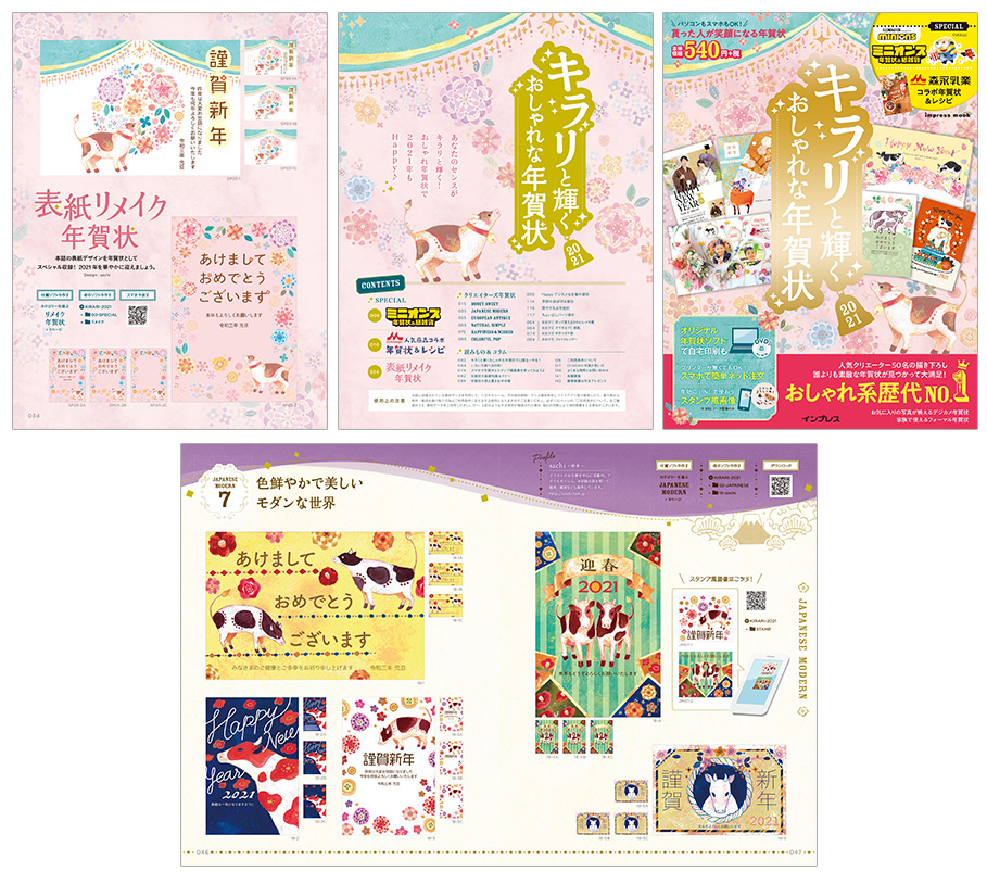 株式会社インプレス/ キラリと輝くおしゃれな年賀状2021 表紙・表紙リメイク年賀状2点・年賀状4点