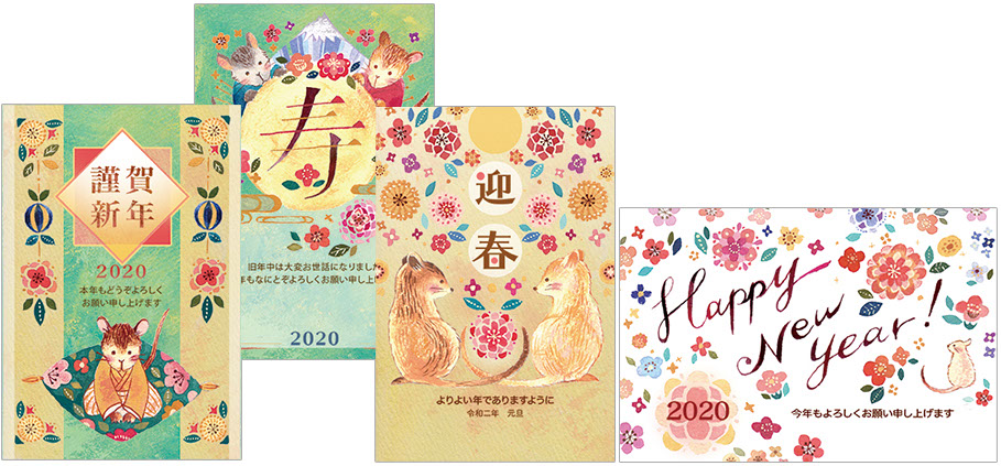 年賀状素材集のイラストを描かせて頂きました。今回は年賀状イラスト6点の他に、結婚報告用のイラスト4点も担当しています。